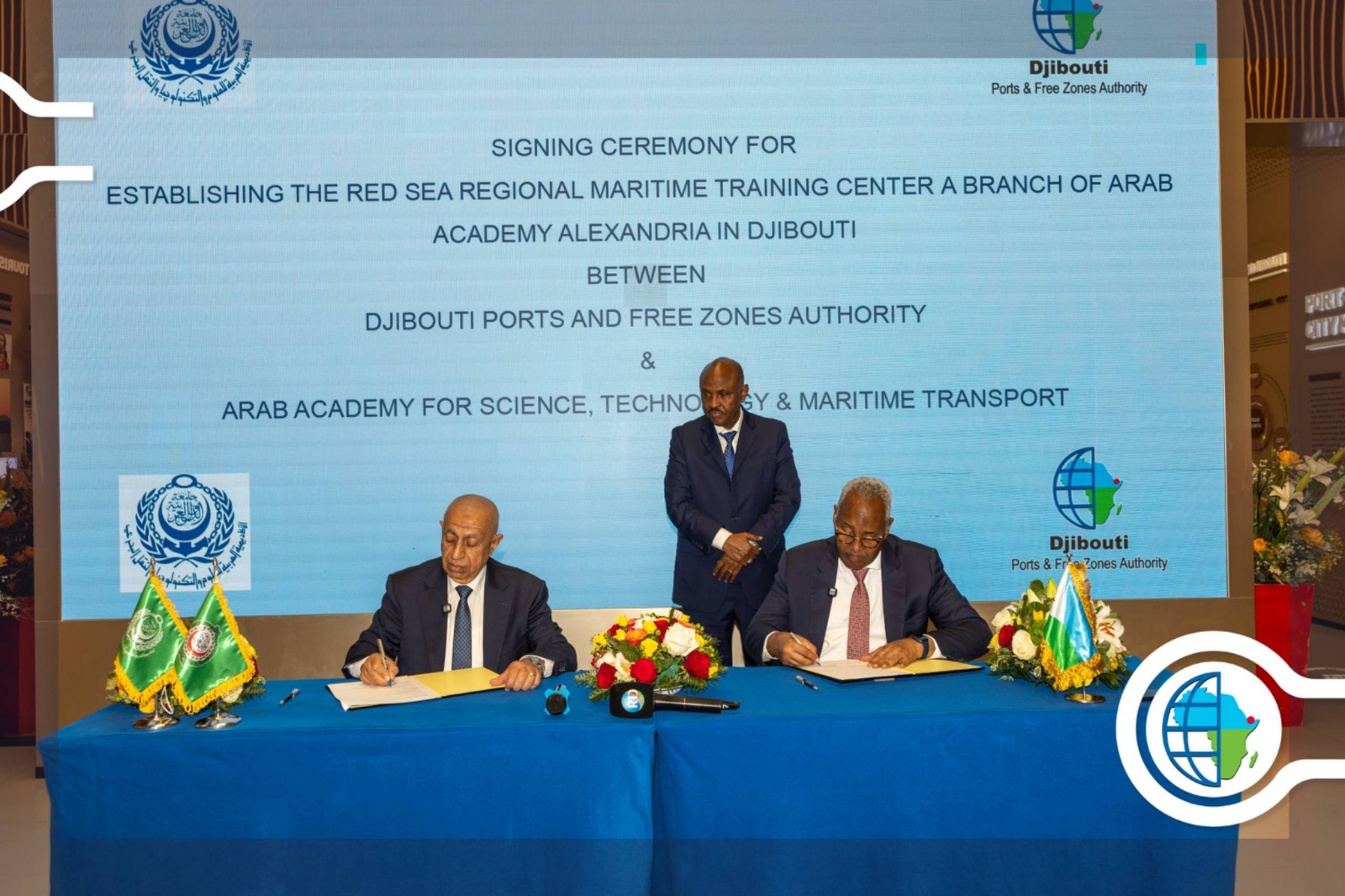 شارك سعادة السفير/ أحمد علي بري , سفير جمهورية جيبوتي بالقاهرة , المندوب الدائم لجيبوتي بجامعة الدول العربية , في حضور مراسم توقيع مذكرة تفاهم بين هيئة الموانئ والمناطق الحرة بجيبوتي (APZFD) , والأكاديمية العربية للعلوم والتكنولوجيا والنقل البحري (ASTMT) , تتعلق بإنشاء مركز إقليمي في جيبوتي للتدريب البحري في البحر الأحمر .